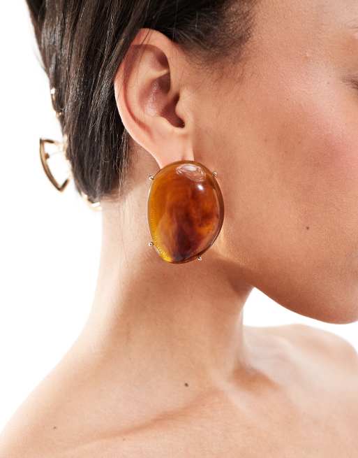 ASOS DESIGN – Guldfärgade, stora stiftörhängen med tigerögedesign