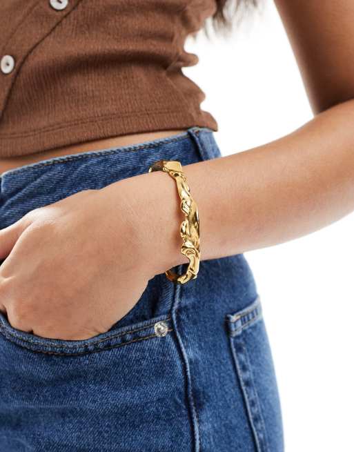 ASOS DESIGN – Guldfärgat armband i vattentåligt, rostfritt stål med smält textur