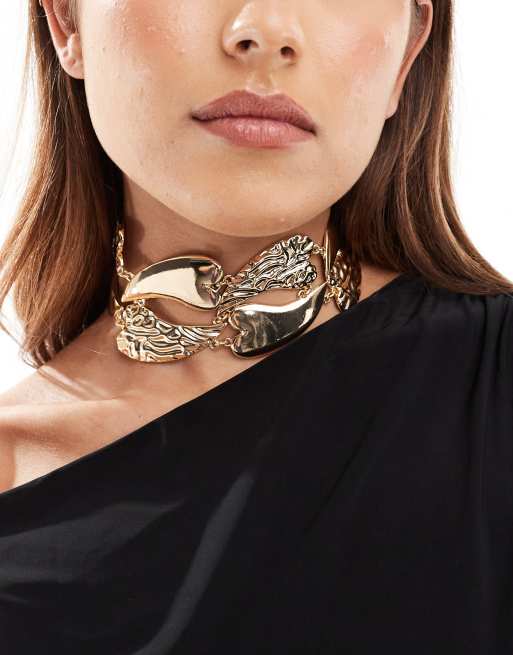 ASOS DESIGN – Guldfärgat choker-halsband med smält hjärt design