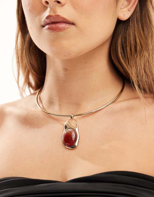 ASOS DESIGN – Guldfärgat chokerhalsband med äkta halvädelsten