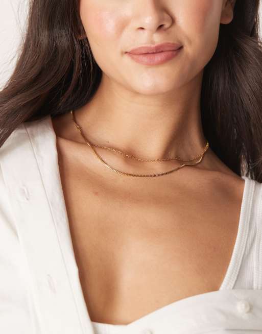ASOS DESIGN – Guldfärgat, flerradigt halsband med mixade länkar i vattentåligt, rostfritt stål