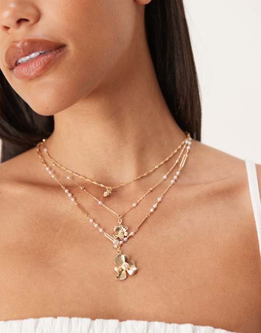 ASOS DESIGN – Guldfärgat halsband i flera rader med klot, stavar och blommor