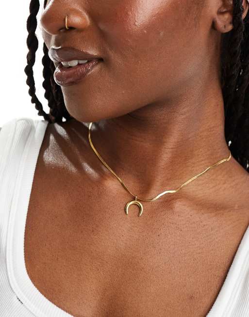 ASOS DESIGN – Guldfärgat halsband i vattentåligt, rostfritt stål med horndetalj