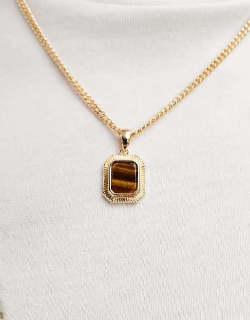 ASOS DESIGN – Guldfärgat halsband med fyrkantigt hänge med tigeröga