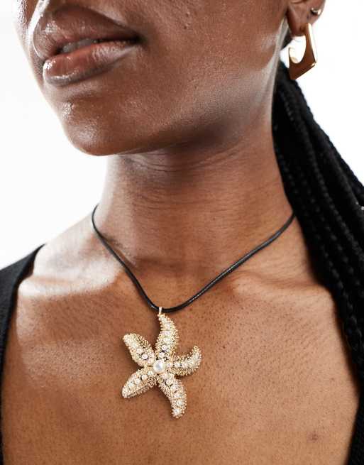 ASOS DESIGN – Guldfärgat halsband med hängande sjöstjärna med fuskpärla