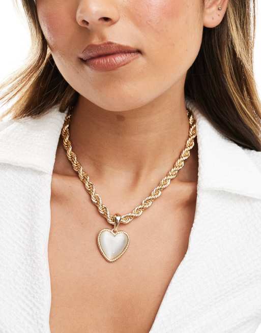 ASOS DESIGN – Guldfärgat halsband med repkedja och hjärta i halvädelstenen kattöga