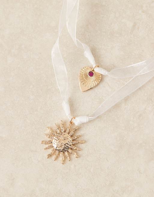 ASOS DESIGN – Guldfärgat halsband med solberlock och band