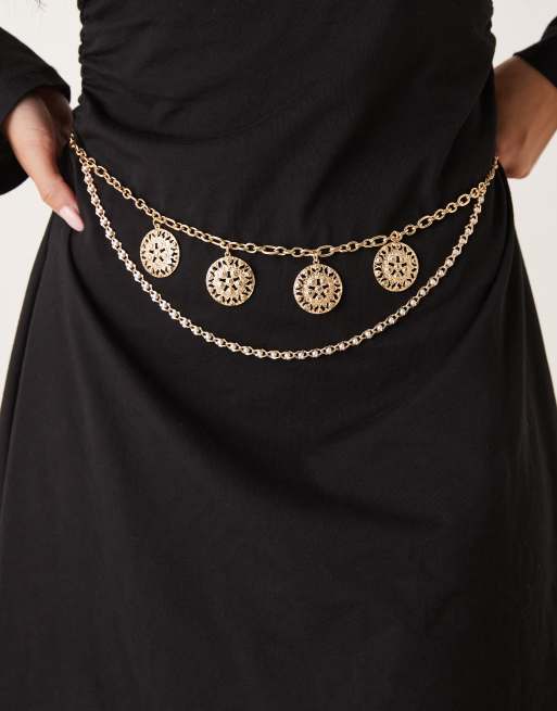 ASOS DESIGN – Guldfärgat höft- och midjeskärp med mynt och kedjelänkar