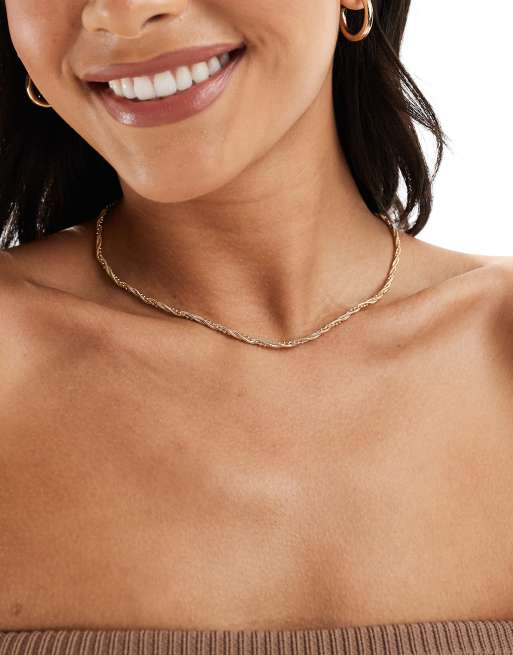ASOS DESIGN – Guldfärgat, kort halsband med tvinnad kedja och kuldetaljer