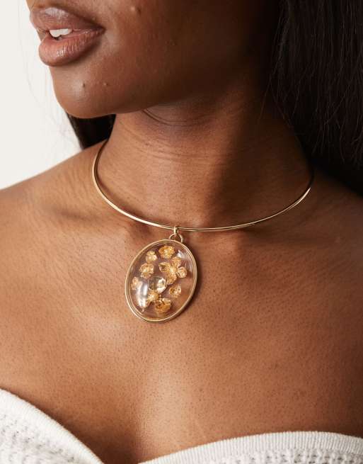 ASOS DESIGN – Guldfärgat, tunt halsband med hängande blomdetalj