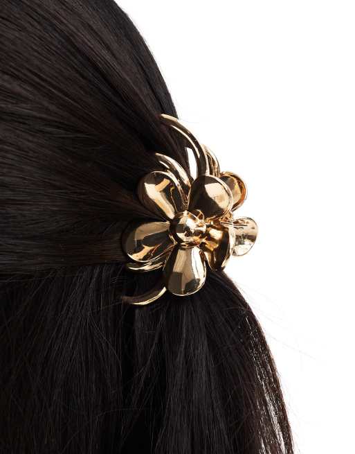 ASOS DESIGN – Guldig hårklämma med blomdetalj