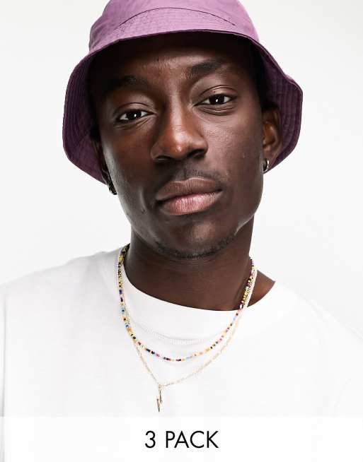 ASOS DESIGN – Guldiga, blandade halsband med pärlor och blixthänge, 3-pack