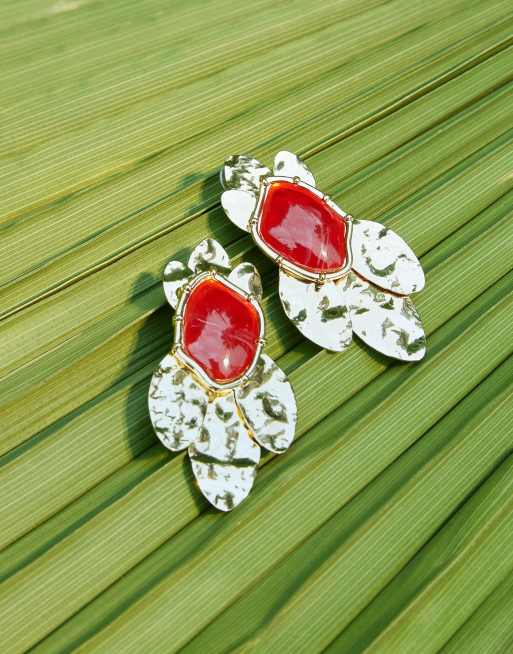 ASOS DESIGN – Guldiga hängande örhängen med hamrad, konstgjord halvädelsten