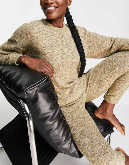 ASOS DESIGN – Gulmelerat set med borstad sweatshirt och mjukisbyxor