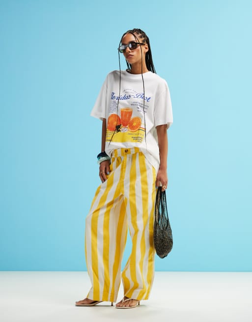 ASOS DESIGN – Gulrandiga byxor med resårmidja och barrelben