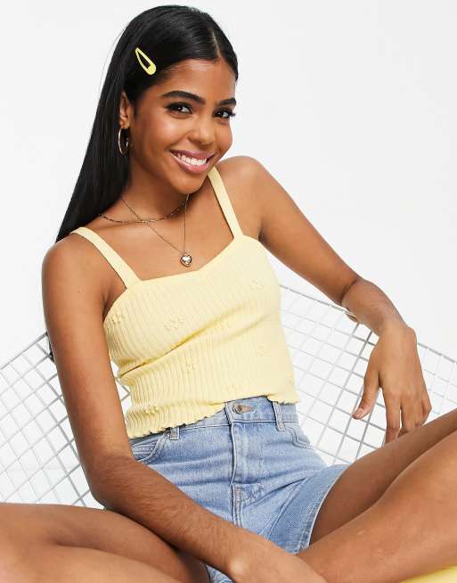 ASOS DESIGN – Gult, stickat linne med blommönster, del av set