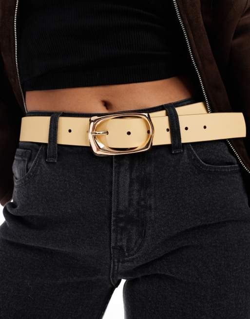 ASOS DESIGN – Gulvitt midje- och höftskärp i läder med stilrent spänne