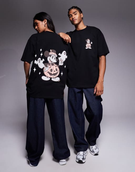 ASOS DESIGN – Halloween – Disney – Svart t-shirt i oversize och unisex-modell med Musse Pigg-tryck