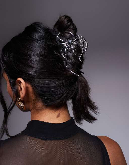 ASOS DESIGN – Halloween – Silverfärgad, spindelformad hårklämma i rodium