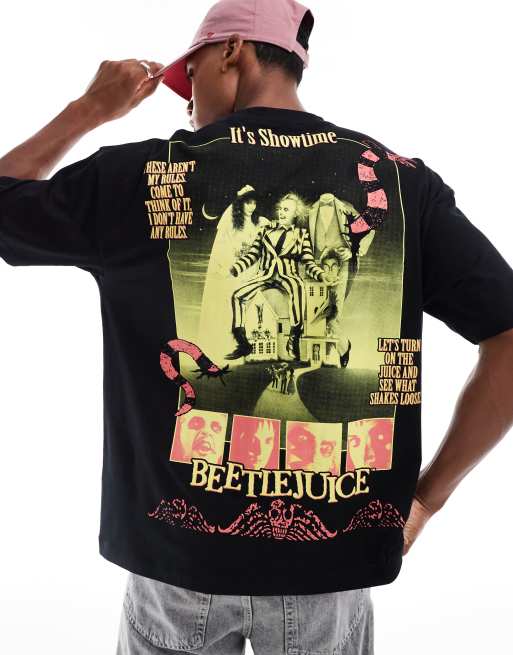 ASOS DESIGN – Halloween – Svart t-shirt i oversize och unisex-modell med Beetlejuice-tryck