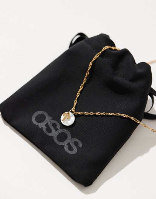 ASOS DESIGN – Halsband med 14K guldplätering, vädurenhänge och pärlimiterad skiva, presentpåse medföljer