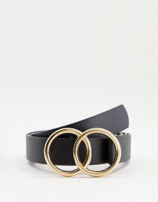 ASOS DESIGN – Höft- och midjeskärp med fasad kant och öppna dubbla cirklar i guldfärgad metall
