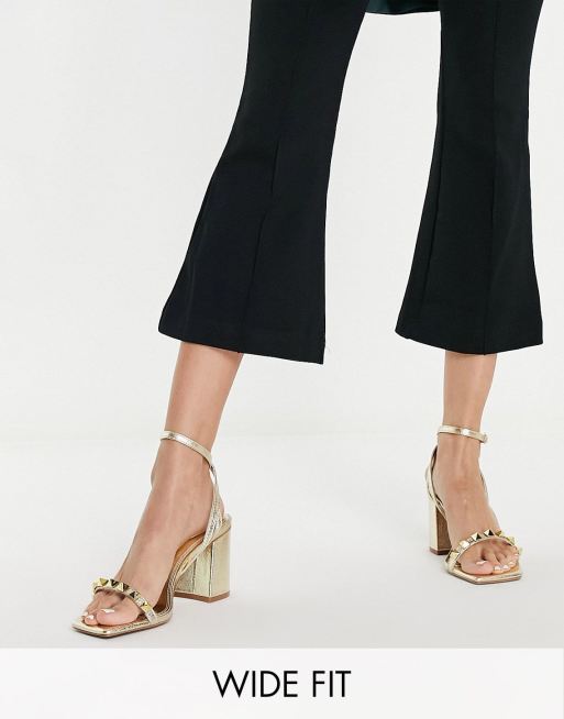 ASOS DESIGN – Holt – Guldfärgade sandaler med halvhöga klackar, bred passform och nitar