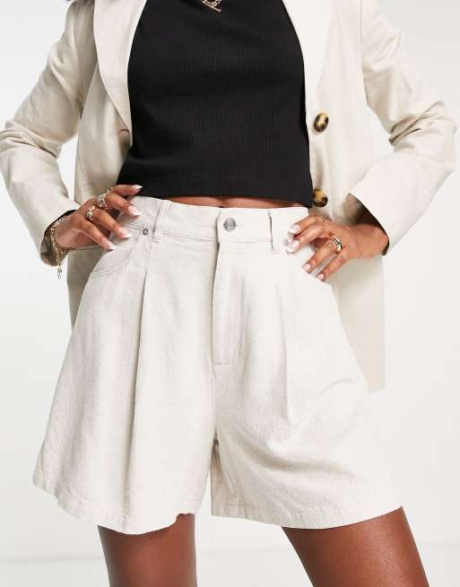 ASOS DESIGN Hourglass – Beiga linneshorts i dad-modell