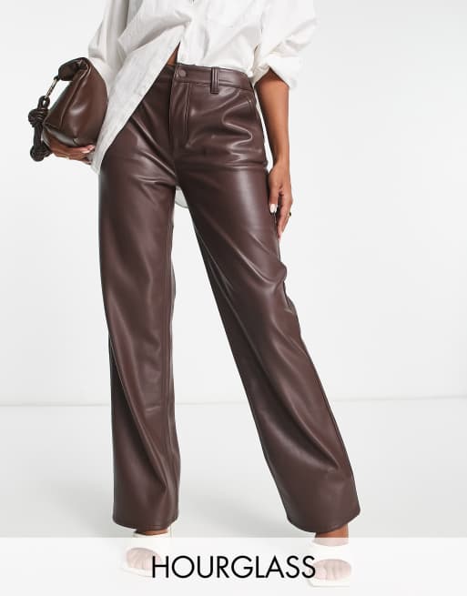 ASOS DESIGN Hourglass – Bruna byxor i läderimitation med raka ben