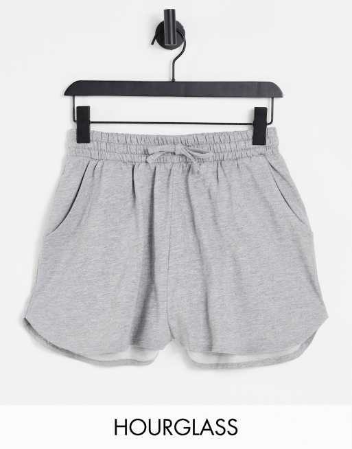 ASOS DESIGN Hourglass – Gråmelerade löparshorts i sweatshirttyg av bomull - GREY