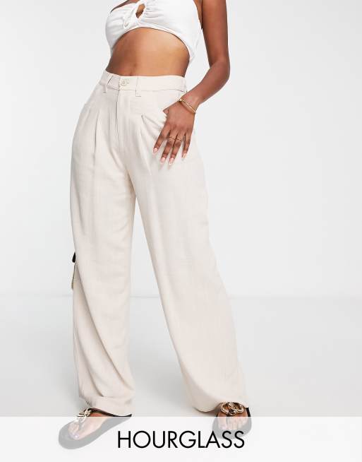 ASOS DESIGN Hourglass – Mjukt kittbeige byxor i dad-modell av linnemix