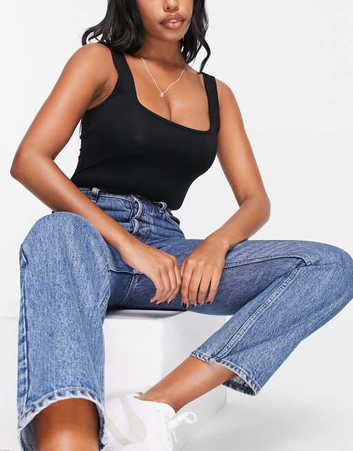 ASOS DESIGN Hourglass– Svart body med djup urringning och linnemodell