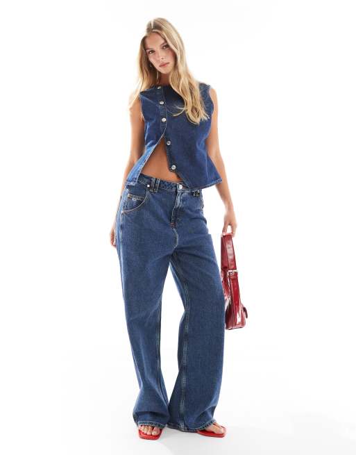 ASOS DESIGN – Indigoblå, asymmetrisk kostymväst i denim
