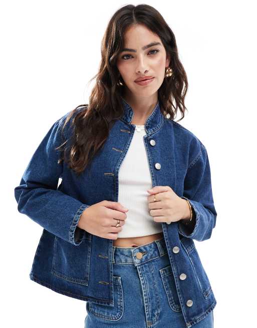 ASOS DESIGN – Indigoblå jacka i denim med rundad krage
