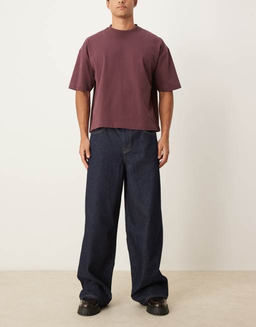 ASOS DESIGN – Indigoblå, superbaggy jeans i tvättad finish