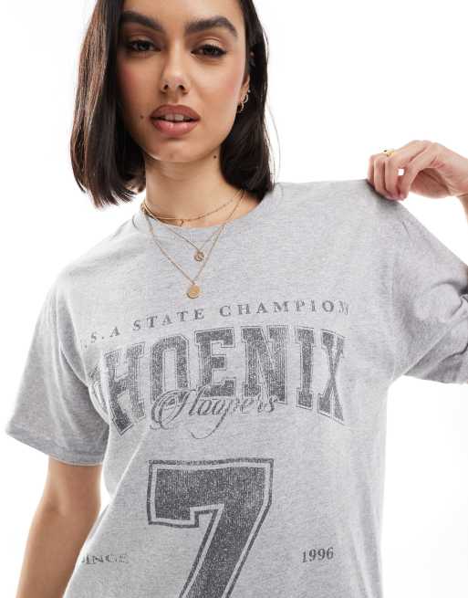 ASOS DESIGN – Isgrå t-shirt i oversize med Phoenix 7-tryck
