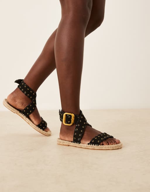 ASOS DESIGN – Jazzy – Svarta espadrillos-sandaler med kaststygn