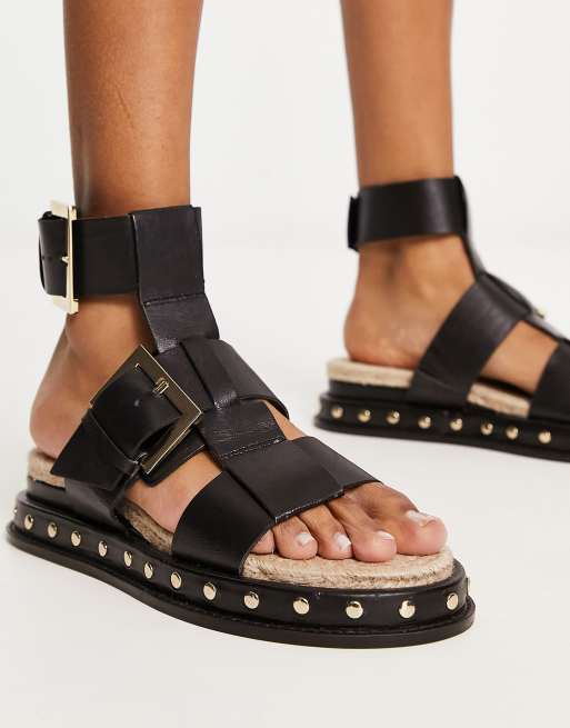 ASOS DESIGN – Jukebox – Svarta espadrillos i läder och fiskarstil