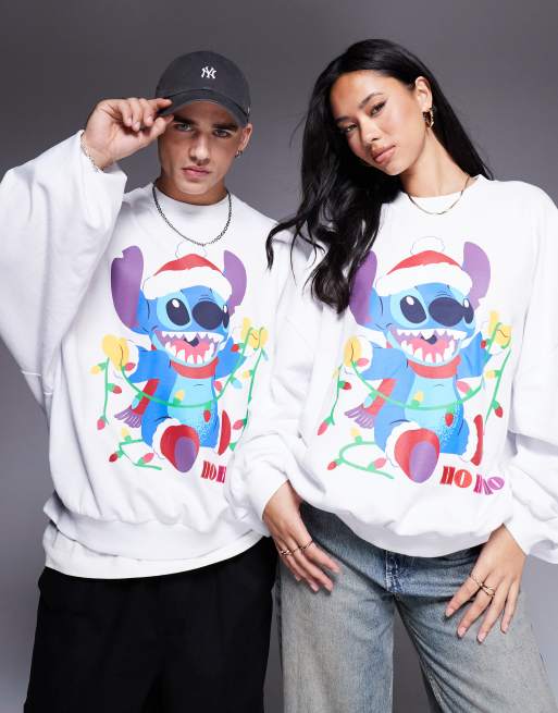 ASOS DESIGN – Jul – Disney – Vit sweatshirt i extra oversize med Stitch-tryck framtill