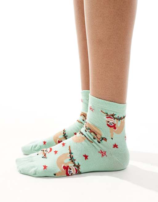 ASOS DESIGN – Jul – Gröna, ankelstrumpor med sengångarmönster