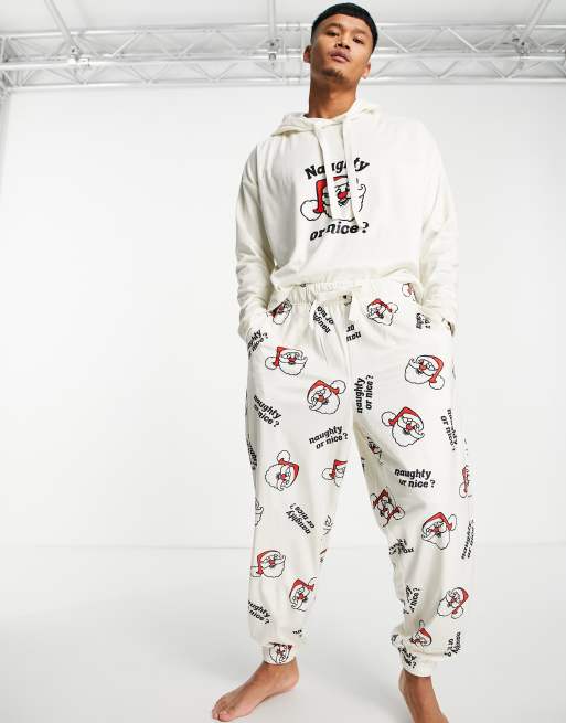 ASOS DESIGN – Jul – Pyjamas i fleece med busigt tomtemönster