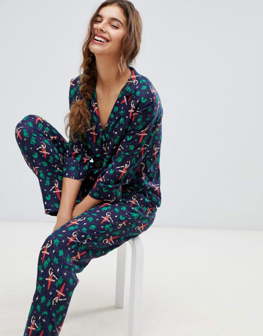 ASOS DESIGN – Jul – Pyjamasset för honom och henne med nötknäpparmönster
