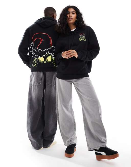 ASOS DESIGN – Jul – Svart huvtröja i unisex-modell och oversize med juligt The Grinch-tryck