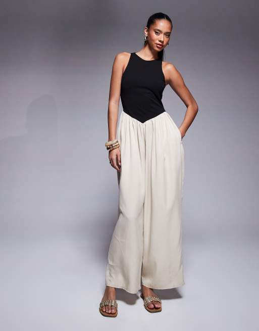 ASOS DESIGN – Jumpsuit i cupro och jersey med vida ben