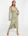 ASOS DESIGN – Kakifärgad draperad midiklänning i 70-talsstil med omlottdesign