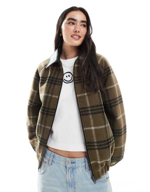 ASOS DESIGN – Kakifärgad, formell bomberjacka med krage i läderimitation