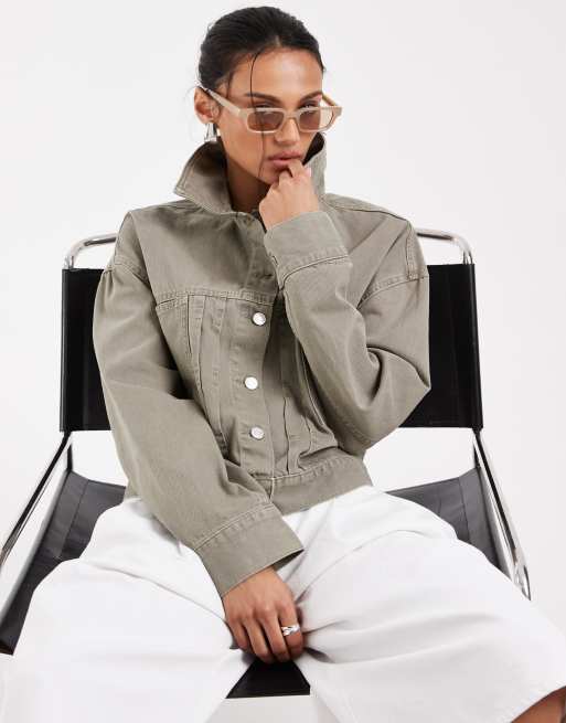 ASOS DESIGN – Kakifärgad jeansjacka med knytning baktill