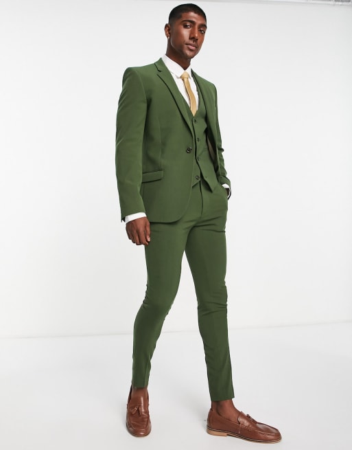 ASOS DESIGN – Kakifärgad kostym med smal passform