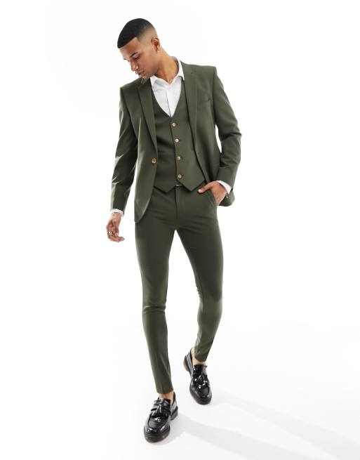 ASOS DESIGN – Kakifärgad kostym med supersmal passform