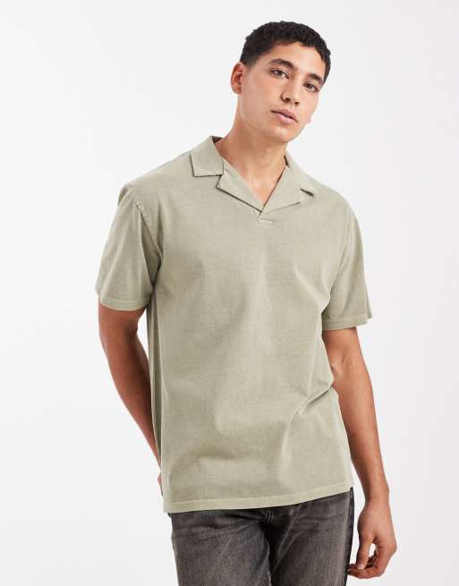 ASOS DESIGN – Kakifärgad, kraftig pikétröja med avslappnad passform